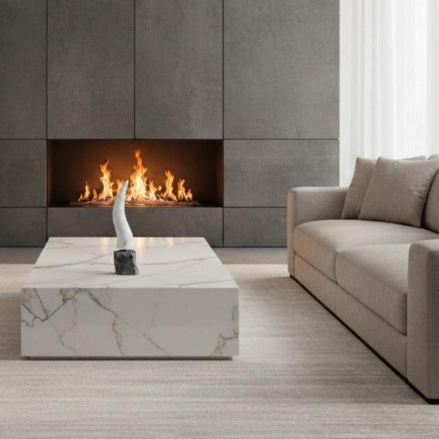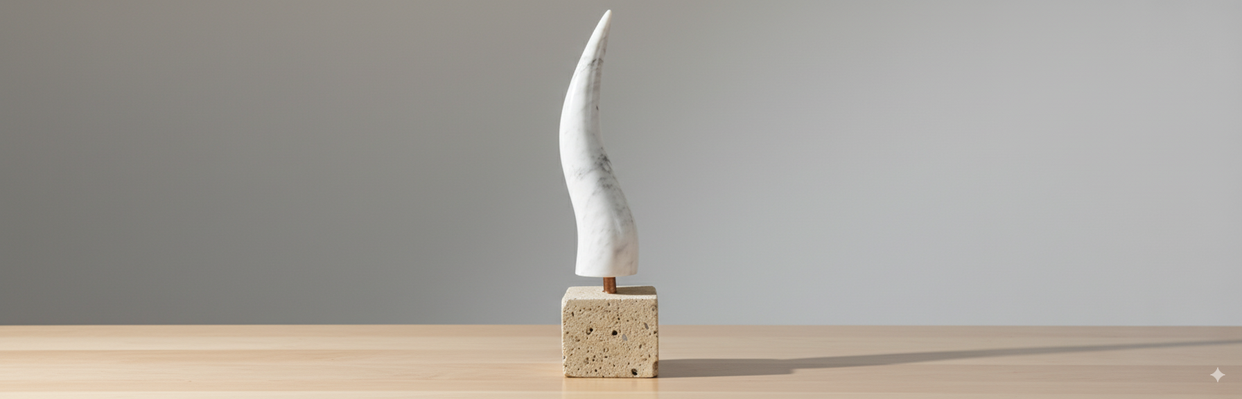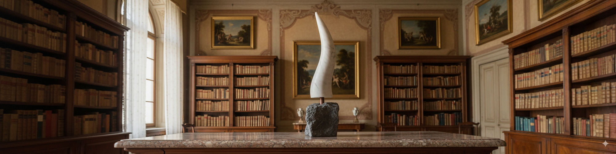 UN OBJET EXTRAORDINAIRE, Corne au design sculpté dans le marbre blanc.