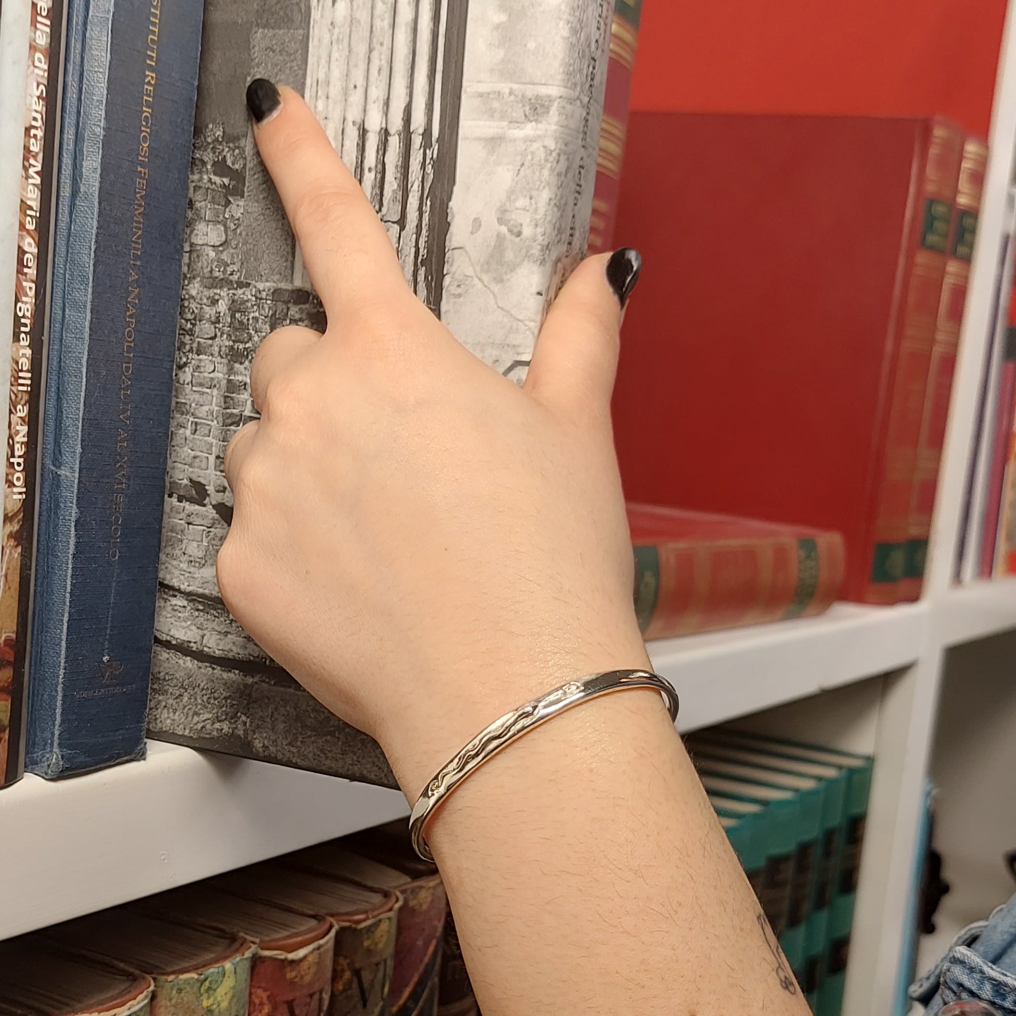 Per mantenere la lucentezza del bracciale in argento, si consiglia di pulirlo con un panno morbido e di evitare l'esposizione a prodotti chimici aggressivi. Conservare in un luogo asciutto per prevenire ossidazioni.