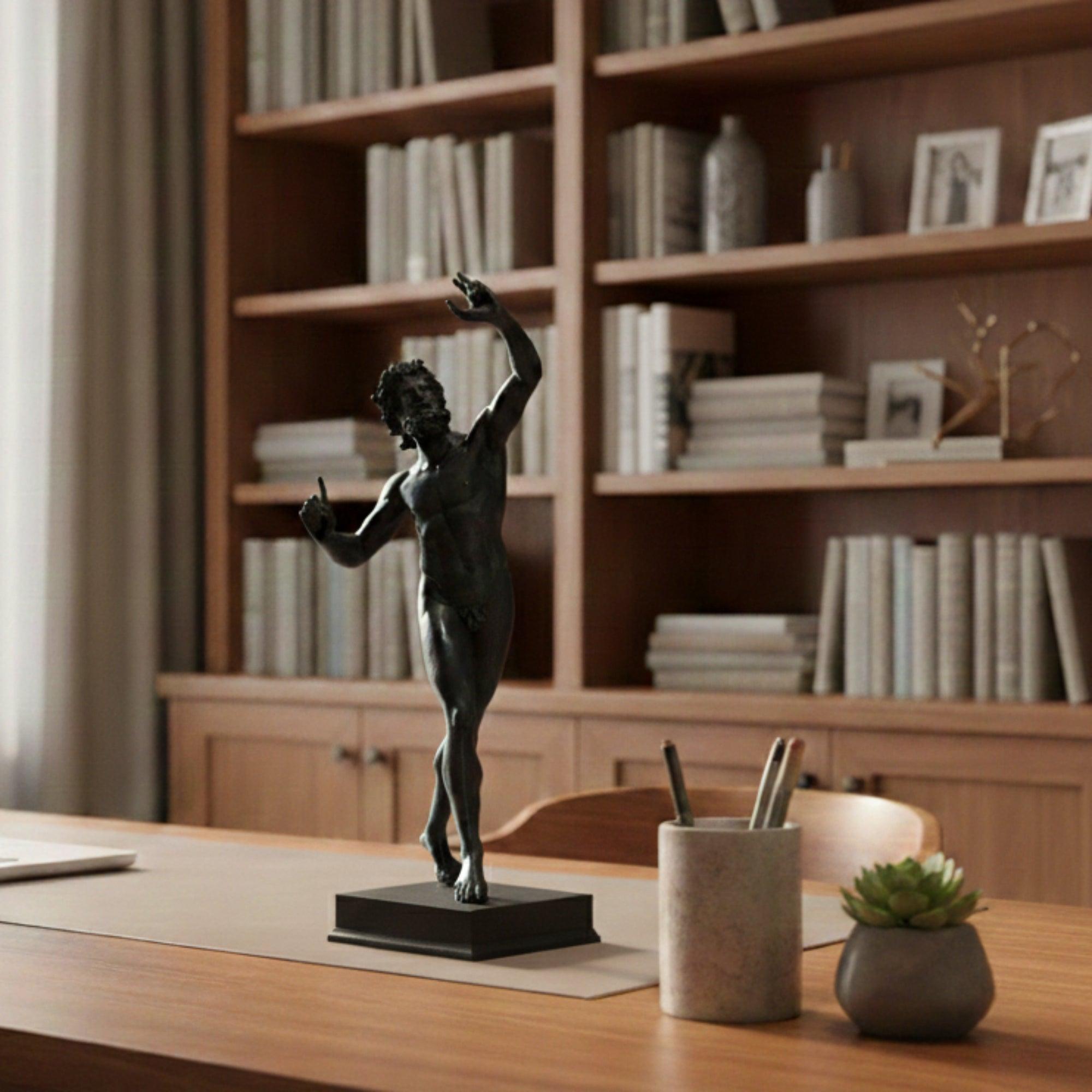 La statuetta è una replica della scultura scoperta a Pompei tra le rovine della famosa Casa del Fauno. La versione romana è una copia dell'originale greco del II secolo a.C.